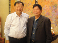 中國(guó)抗癌協(xié)會(huì)常務(wù)理事、河南省抗癌協(xié)會(huì)會(huì)長(zhǎng)楊文獻(xiàn)教授和《百花散》傳人梅先生合影